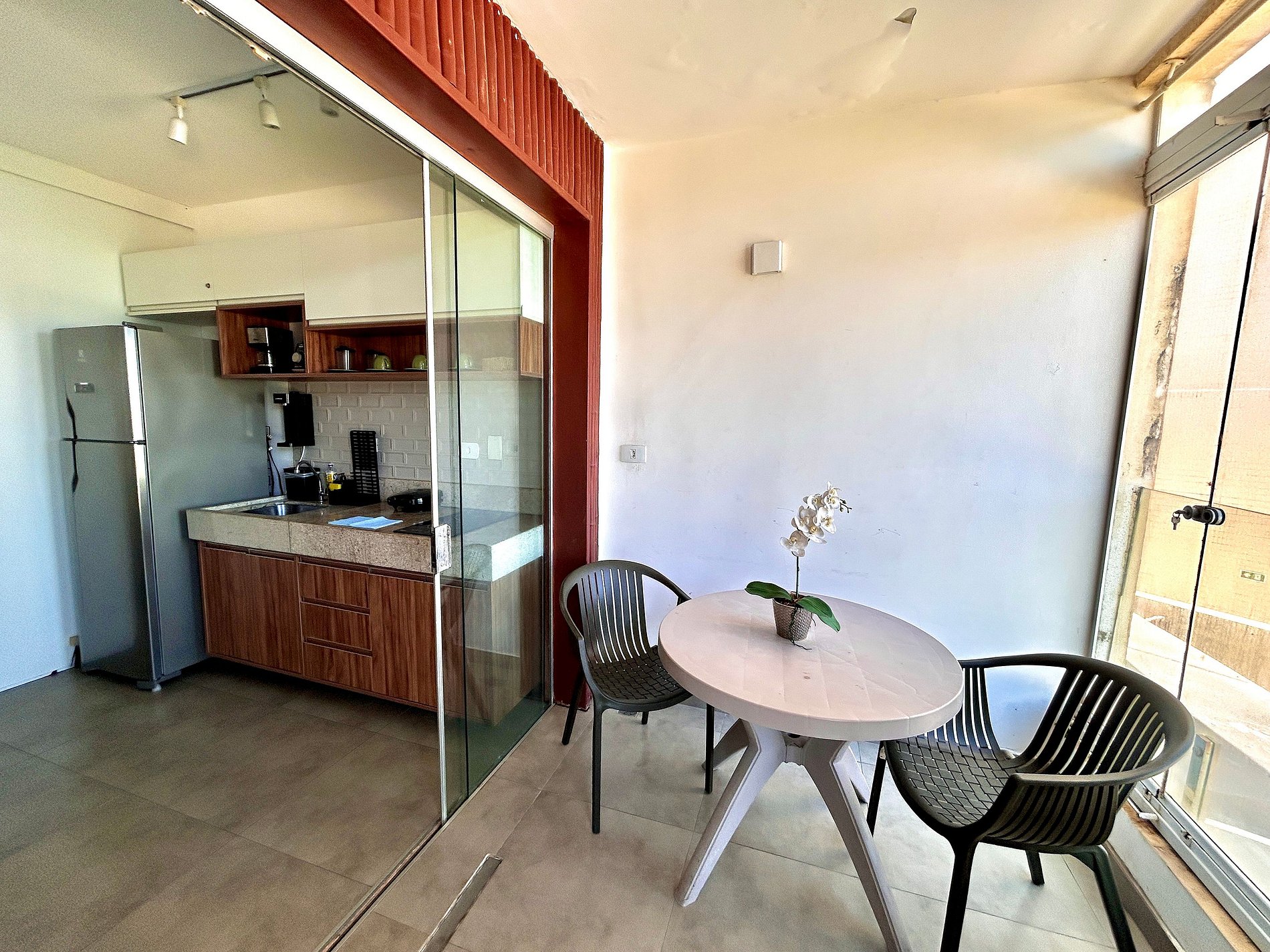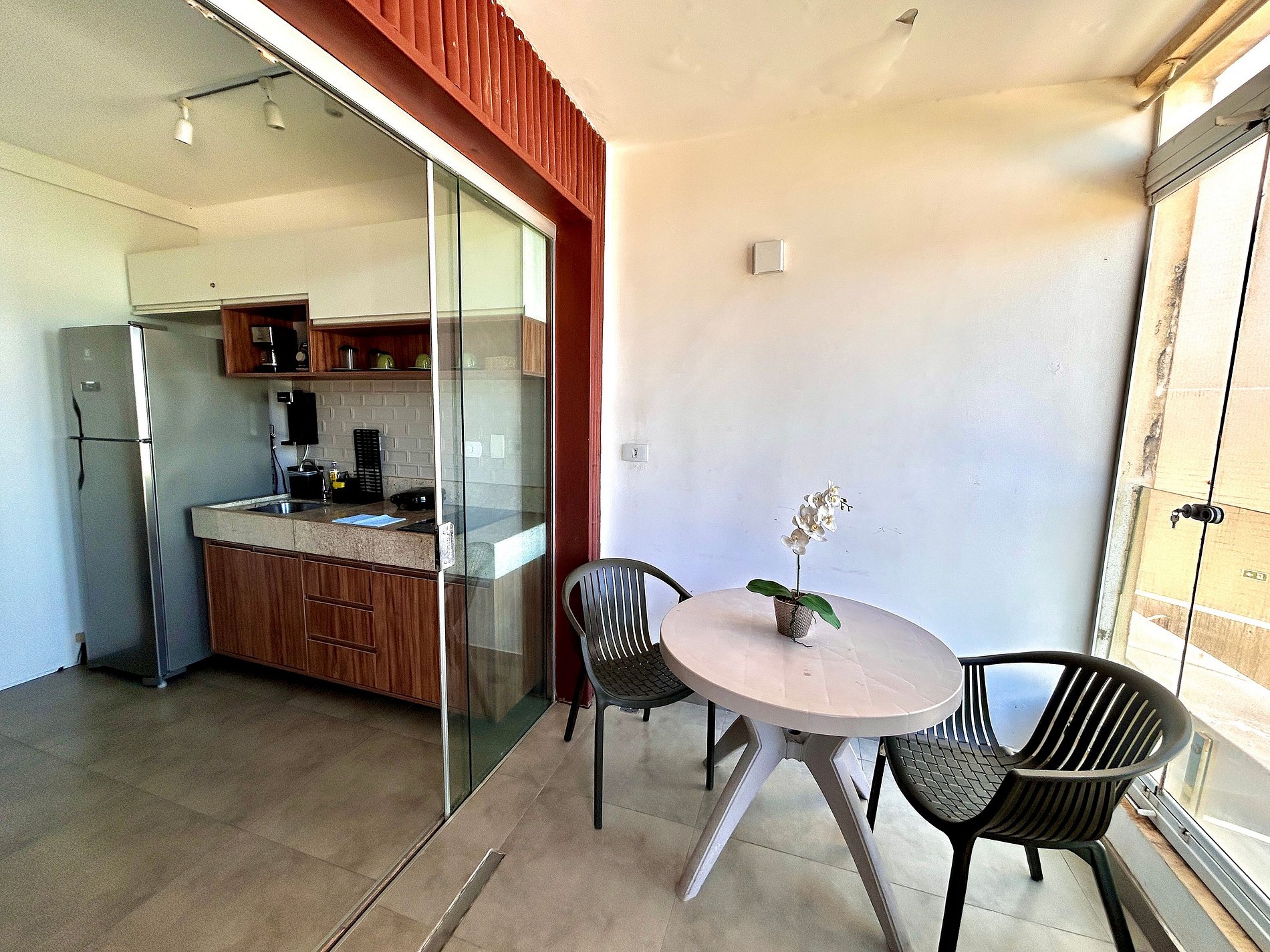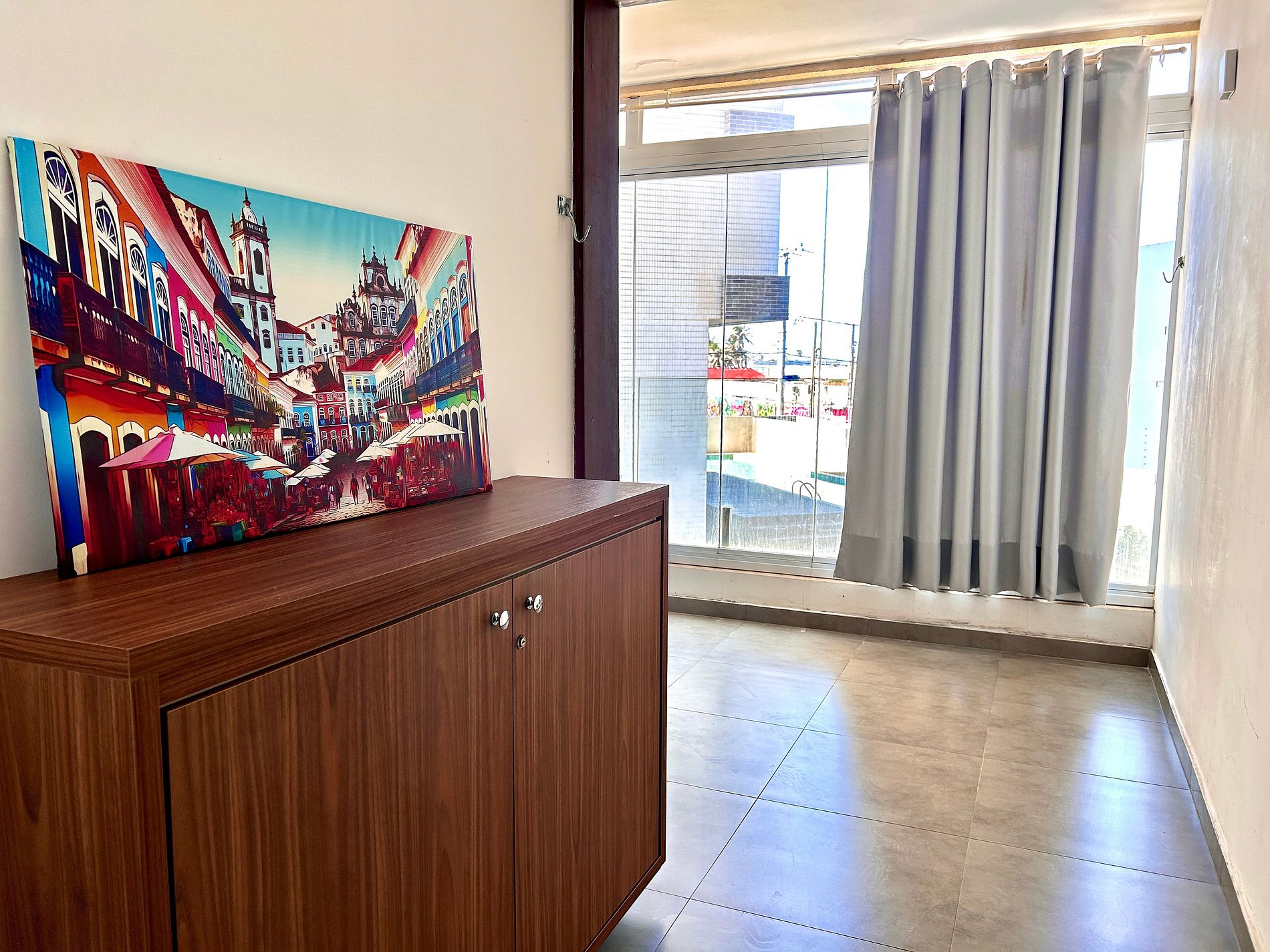 A localização é excelente, fica a frente do Shopping de Jaguaribe. O espaço possui fogão, geladeira, mesa de jantar, cafeteira, liquidificador e todos utensílios necessários para tornar sua estadia satisfatória. Sem contar com a varanda com vista para piscina do condomínio.